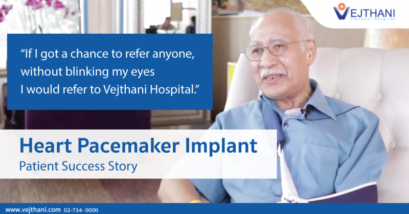 My main problem was a heart attack and it’s so risky. I have felt about a 2-seconds of a heart attack, but when I heard if it lasts for 4-5 seconds there is a high chance of mortality, my family members were scared and worried. The solution to this problem was to implant that device which automatically checks the condition. And then you can live your life easily and do whatever you want. We agreed. My family helped me a lot. I have visited other 2-3 hospitals in Bangkok. They are also good but you know in a race, there is only one winner. In my pacemaker case, if I got a chance to refer anyone, without blinking my eyes I would refer to Vejthani hospital. I am very grateful.