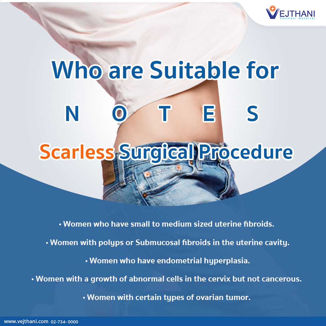However, Natural orifice transluminal endoscopic surgery (NOTES) is a new surgical technique, which needs to be performed by obstetrics and gynecological surgeons who have high level of expertise and experiences in this particular procedure. To achieve the most effective and appropriate treatment, each patient who requires to undergo gynecologic surgeries must consult with their surgeons regarding the surgical guidelines as well as the advantages and disadvantages of NOTES before receiving the treatment.
