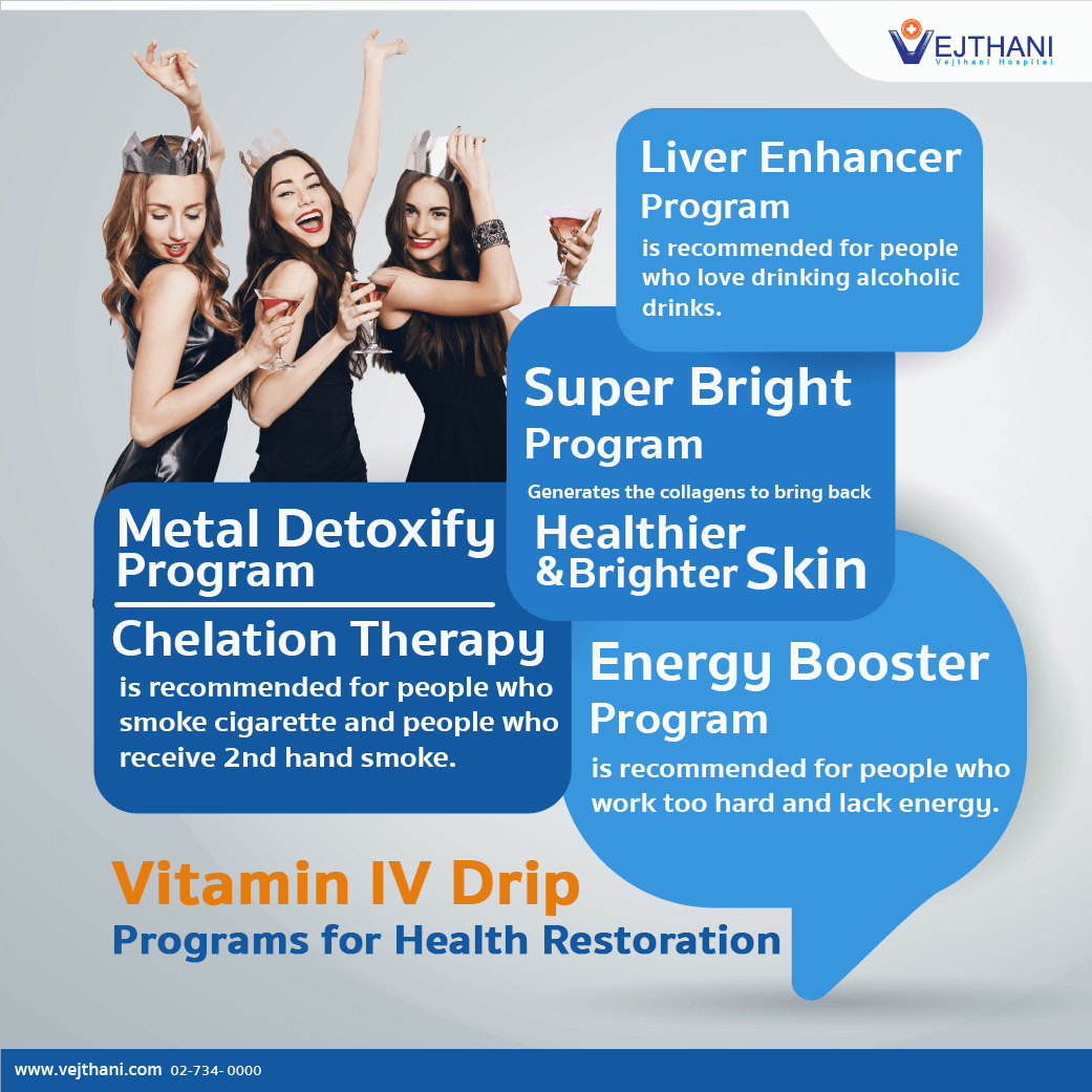 Vejthani Q-Life Center offers you 4 Vitamin IV Drip programs for health restoration as follows: