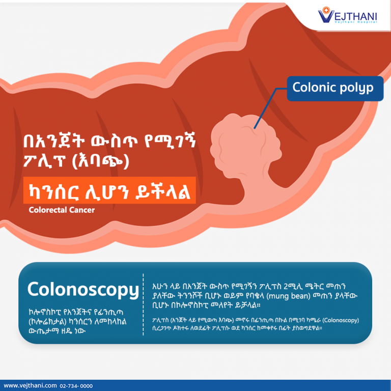 - ኮሎኖስኮፒ (colonoscopy) ለኮሎሬክታል ካንሰር (Colorectal cancer) ጥሩ የምርመራ ዘዴ ነው። ምክንያቱም የኮሎሬክታል ካንሰርን (Colorectal cancer) ሊያስከትል የሚችል ፖሊፕ (እባጭ) ከተገኘ በመጀመሪያ ደረጃ ላይ መታከም ስለሚችል ሙሉ በሙሉ የመዳን እድሉ ከፍተኛ ነው።