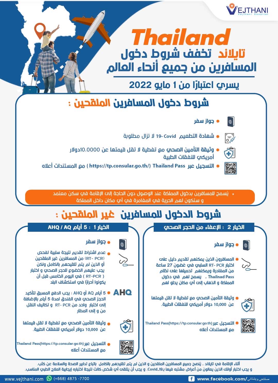 • التسجيل عبر Thailand Pass (عبر https://tp.consular.go.th/) مع المستندات أعلاه