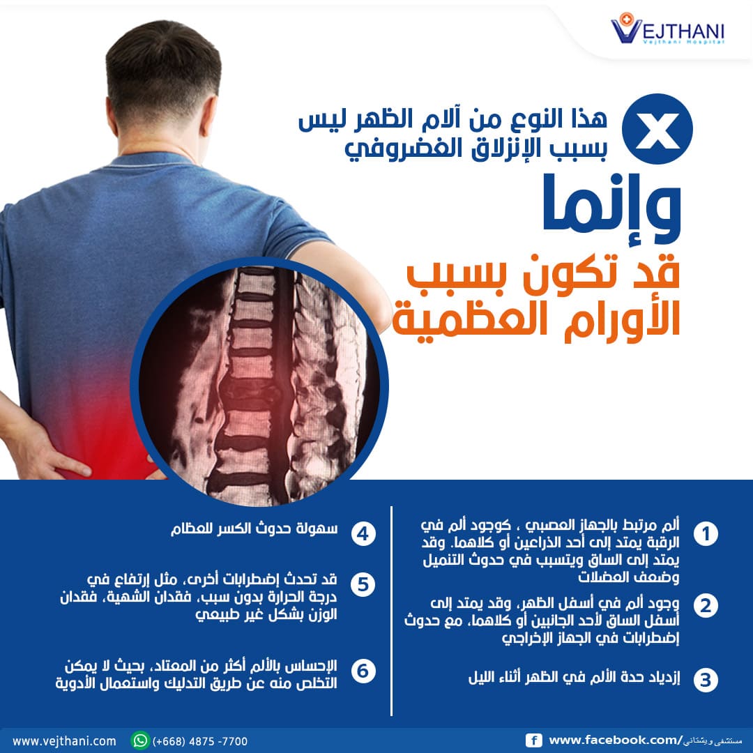 ✅..هذا النوع من آلام الظهر ليس بسبب الإنزلاق الغضروفي.. وإنما قد يكون بسبب الأورام العظمية..✅