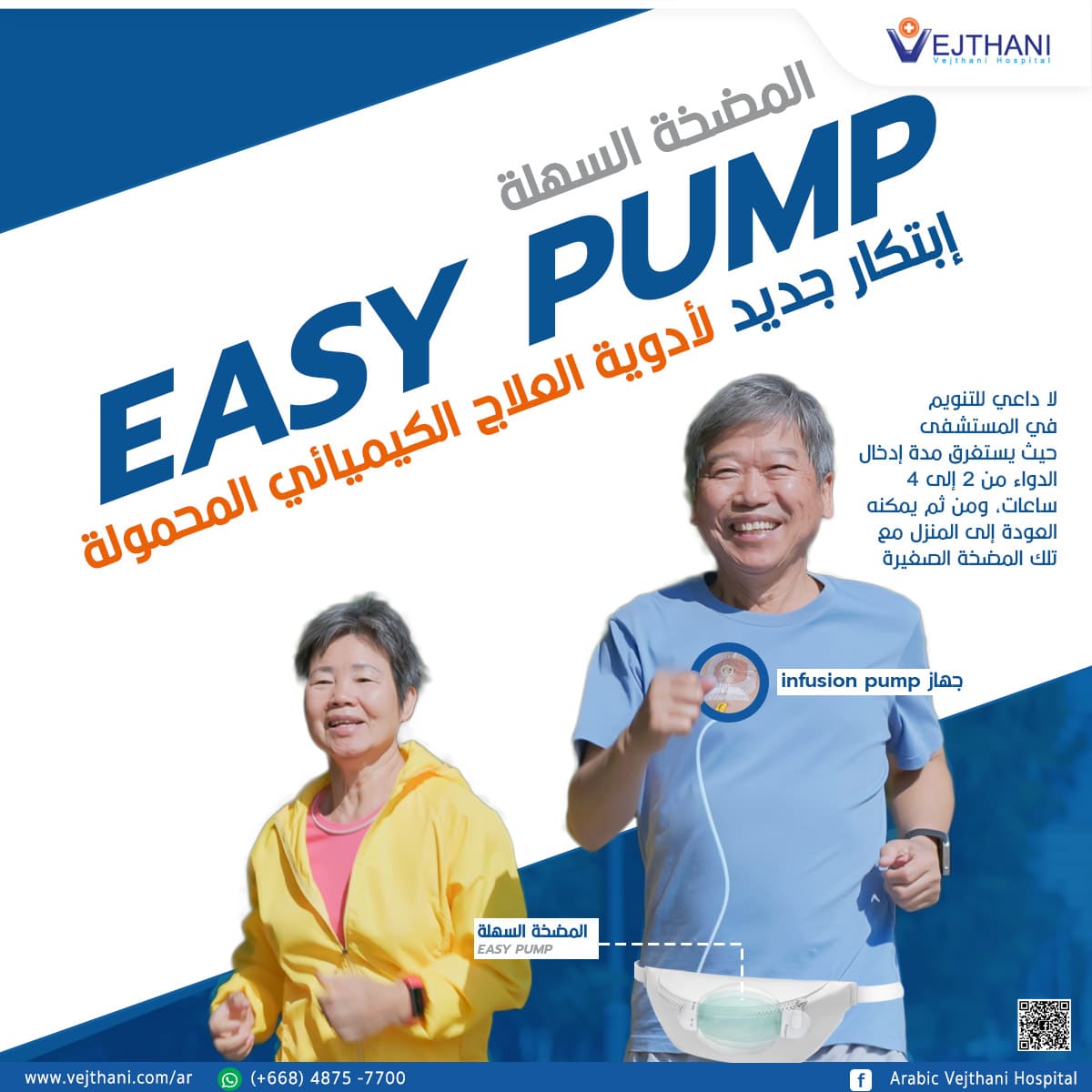.بعد حوالي یومي، وعندما ینفد الدواء من المضخة، سیتعین على المریض العودة إلى المستشفى مرة أخرى لإزالة القسطرة الوریدیة وفصل المضخة عنھ. وھذا الإبتكار یساعد المرضى على عدم إیذاء أنفسھم من خلال الإضطرار إلى غرز الإبر في الورید عدة مرات كما كان في السابق، مما یقلل من حدوث تمزق الورید الذي قد ینشأ عن وخز الإبر. بالإضافة إلى أنھ یمكن للمرضى إختیار المكوث في البیت أثناء تلقي العلاج دون الحاجة إلى النوم في المستشفى. مما یجعلھم قادرین على ممارسة حیاتھم الیومیة بشكل طبیعي كالمعتاد.