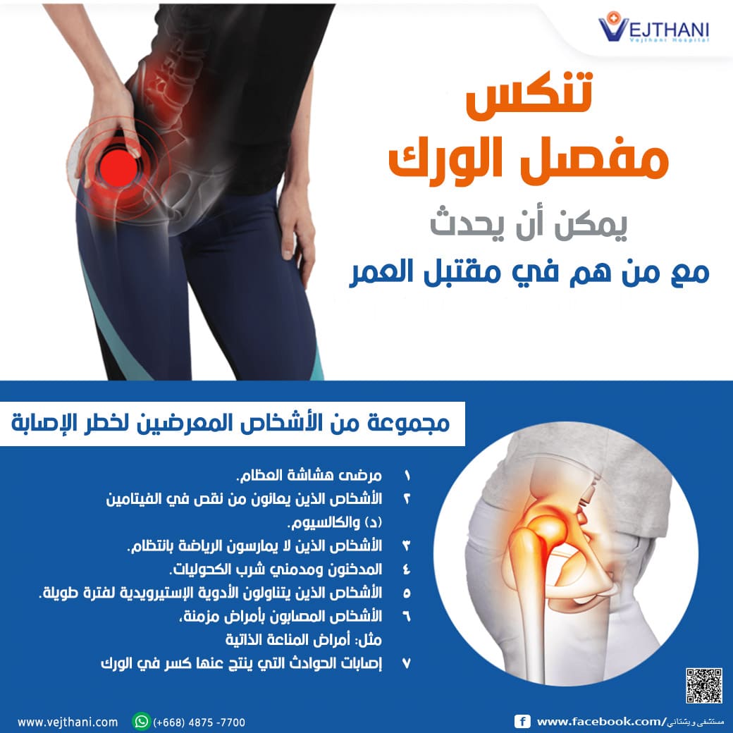 📝..بالإضافة إلى إصابات الحوادث التي ينتج عنها كسر في الورك، كالسقوط من مكان مرتفع أو الحوادث المرورية.