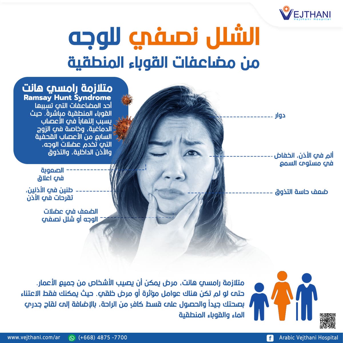 📝..متلازمة رامسي هانت (Ramsay Hunt Syndrome)، هي مرض يسببه فيروس Varizella Zoster ، وهو نفس فيروس جدري الماء الذي يختبئ في العقد العصبية ويهاجم عندما يكون الجسم ضعيفًا أو عندما يكون نظام الجهاز المناعي منخفضًا، مما يسبب مرض القوباء المنطقية.