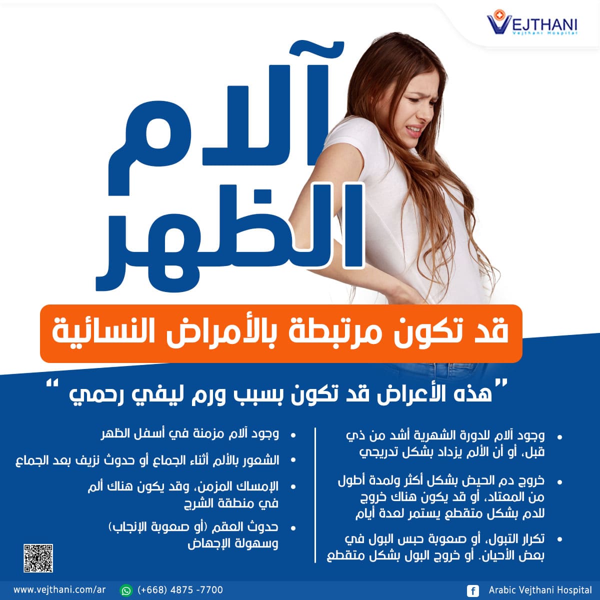 📝..قد يتساءل البعض ما علاقة آلام الظهر بآلام الأورام الليفية الرحمية عند النساء؟ والجواب هو: لأن الآلام التي تكون في أسفل الظهر ربما تعود للأعضاء الأخرى التي تكون حول تلك المنطقة كالرحم مثلاً، لاسيما أن أحد أعراض الآلام الليفية الرحمية هو الألم في أسفل الظهر، إلى جانب الأعراض الأخرى، مثل: