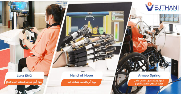 إن استخدام الأجهزة الآلية في إعادة التأهيل لتقوية عضلات الذراعين واليدين، يساعد المرضى على إستعادة الحركة بشكل جيد. ومن هذه الأجهزة المستخدمة في مستشفى ويشتاني