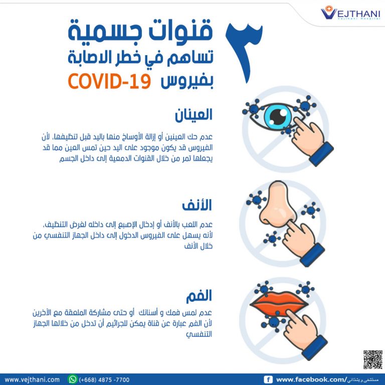 من الفيروس، ما لم نتجنب مالمسة بعض األعضاء التي في الوجه كالعين واألنف والفم التي تسمح بإنتقال
