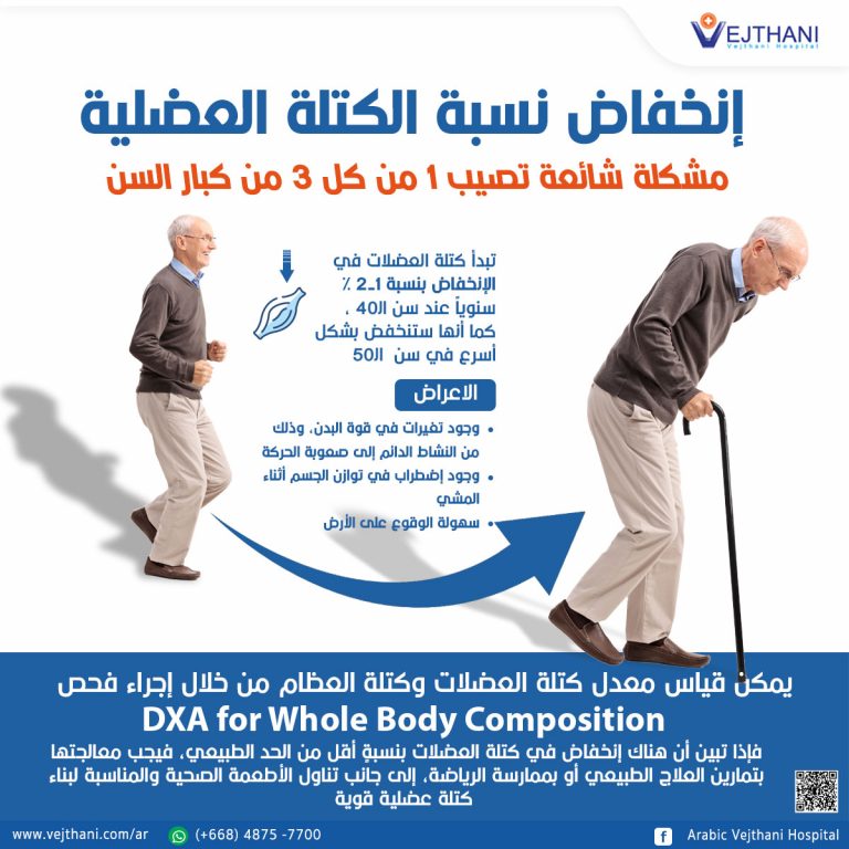 عادة ما تبدأ كتلة العضلات في الإنخفاض بنسبة 1-2 % سنوياً عند سن اﻟ40، كما أنها ستنخفض بشكل أسرع في سن اﻟ50 وهذا ما يسبب تدهور حالة الجسم وجعله عرضة للإصابة بالأمراض والحوادث التي يمكن أن تهدد الحياة