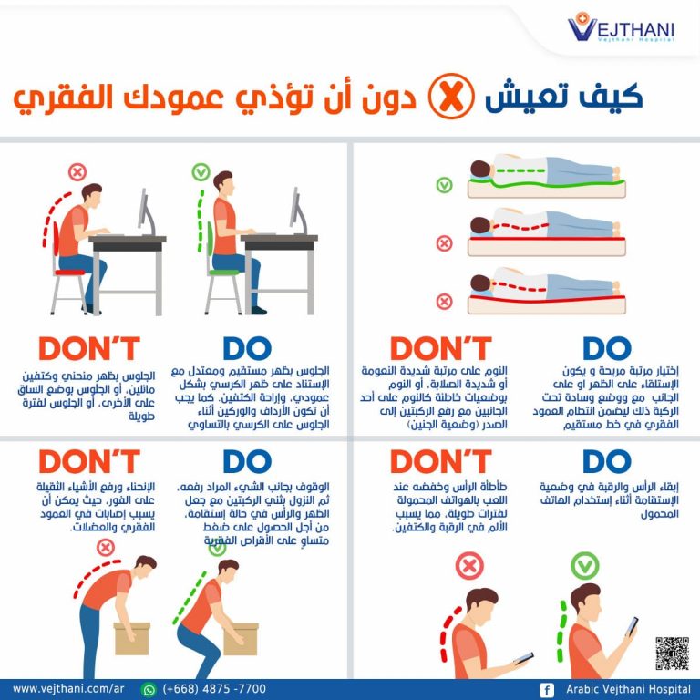 عادات و سلوكيات خاطئة تؤثر بشكل سلبي على صحة جسمه. إذ قد تأتي هذه العادات على شكل وضعيات خاطئة للجسم، كالجلوس أو الاستلقاء أو رفع الأشياء الثقيلة، فينتج عنها إصابة للعمود الفقري. وهنا بعض النصائح والإرشادات في كيفية التصرف بالشكل الصحيح، والتي تساعد على تفادي مشاكل العمود الفقري في المستقبل
