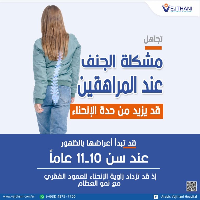 إن حالات الجنف لدى المراهقين قد تبدأ أعراضها بالظهور عند سن 10-11 عاماً، إذ قد تزداد زاوية الإنحناء للعمود الفقري مع نمو العظام إلى أن يتوقف مريض الجنف عن النمو. والجنف هو تشوه يصيب العمود الفقري فيسبب له الإنحناء والإعوجاج. حيث إنه إلى وقتنا الحاضر، لم يتم العثور على سبب دقيق لحدوثه