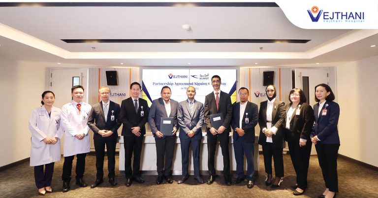 Dr. Charkrit Soucksakit, chief executive officer of Vejthani Public Company Limited, signed a business partnership with Dr. Mohammad Al Qenai, Head of Medical Center, Kuwait Airways.News and Updates