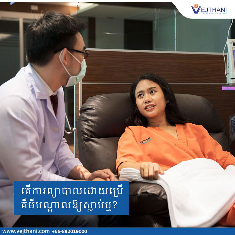 វេជ្ជបណ្ឌិត Dr. Thanate Dejsakdipon, គ្រូពេទ្យឯកទេសខាងជំងឺមហារីកនៃមន្ទីរពេទ្យេវេជ្ជថានីបានពន្យល់ថាការព្យាបាលដោយប្រើគីមី(Chemotherapy)គឺជាការព្យាបាលដែលត្រូវបានប្រើដើម្បីព្យាបាលជំងឺមហារីកជាច្រើនប្រភេទ។ វាមានទំរង់ជាថ្នាំចាក់និងថ្នាំលេបដែលមានឥទ្ធិពលក្នុងការការពារនិងបំផ្លាញកោសិកាមហារីកក៏ដូចជាបំបាត់កោសិកាមហារីកដែលកំពុងបែងខ្លួន។