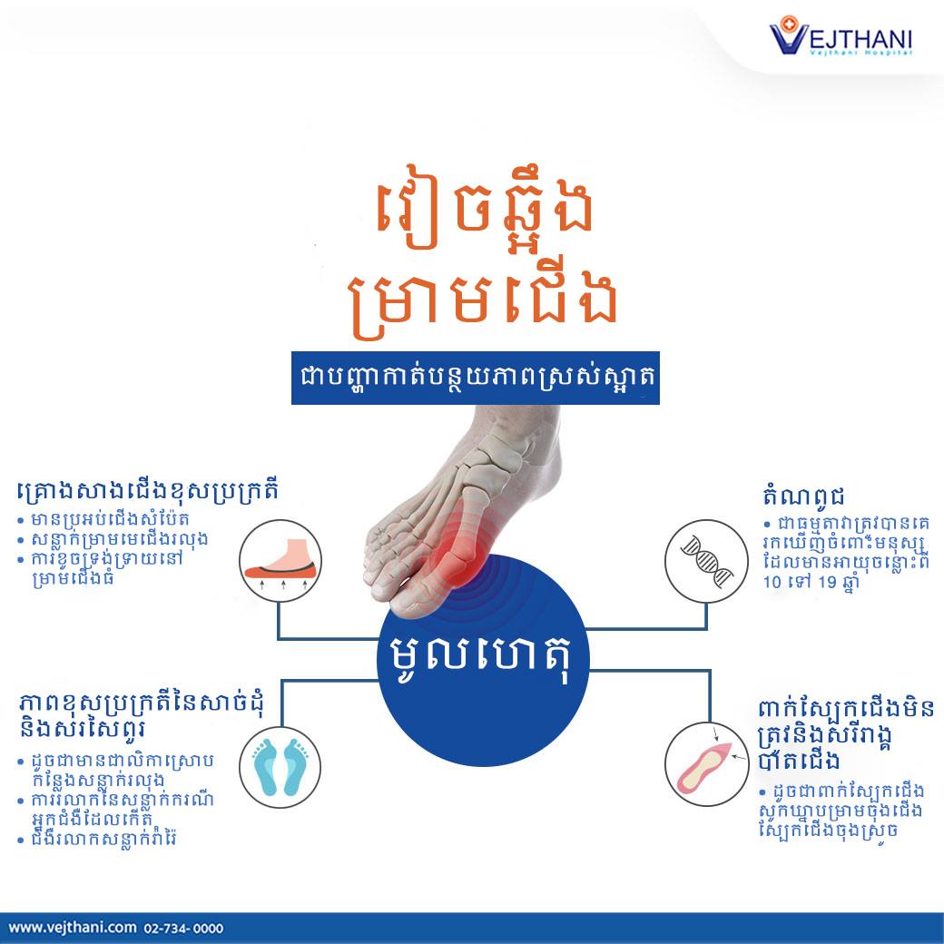 កត្តាដែលកឲ្យកើតរោគមានដូចខាងក្រោម(The Causes of Hallux valgus)៖