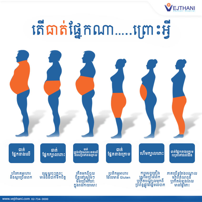 និងសកម្មភាពនៃការរស់នៅរបស់បុគ្គល មកស្វែងយល់ទាំងអស់គ្នាថាធាត់ផ្នែកនីមួយៗបណ្តាលមកពីសកម្មភាពអ្វីខ្លះ ?