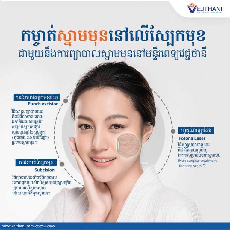 កម្ចាត់ស្នាមមុននៅលើស្បែកមុខជាមួយនឹងការព្យាបាលស្នាមមុននៅមន្ទីរពេទ្យវេជ្ជថានី