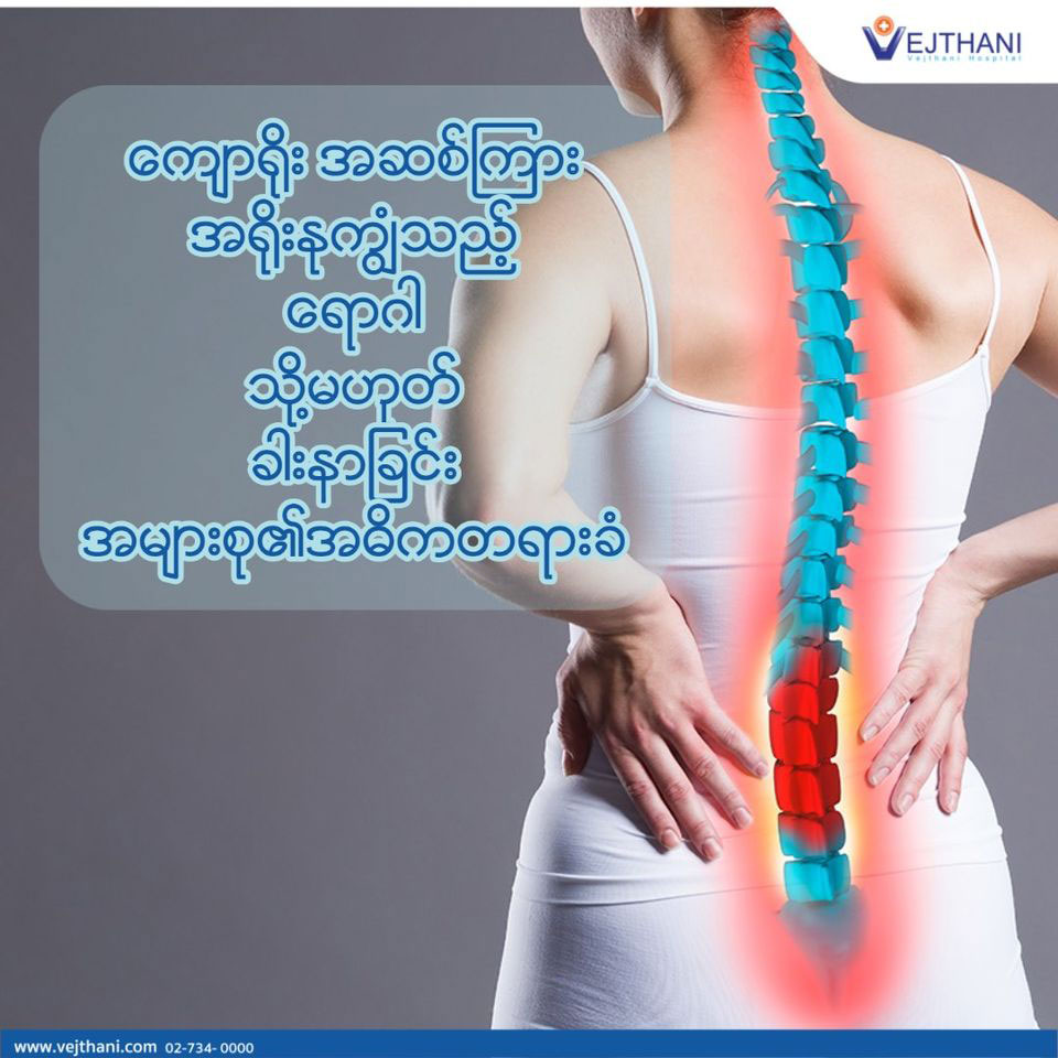 ေဝ့ဌာနီေဆး႐ုံႀကီးမွ ေက်ာရိုး ခြဲ႕စိတ္ အထူးကု ဆရာဝန္ႀကီး ေဒါက္တာ ပတ္ထာရာကိုဆာႏြန႔္ (Dr. Pattara Kosanunt) ၏ေျပာၾကားခ်က္အရ