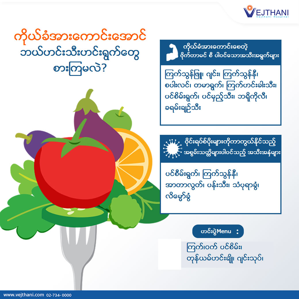 ကၽျႏ္ေတာၱိဳ႕ ေန႔စဥၥားသံုးေနက္ ဟင္းသီးဟင္းျရက္ေၾတမြာ ခႏၶာကိုယၠိဳ အက္ိဳး်ပဳေစတဲ့ဓာတ္ေၾတေအ်မာက္အ်မားပါ၀င္ေနတာ အားလံုးသိၾက်ပီး်ဖစၸါတယ္။ အခုတစၡါမြာေတာ့ ေ၀့ဌာနီရဲ႔ အာဟာရဆိုင္ရာက္ႏ္းမာေရးဌာန (Nutritional Health Department) မြ အႀကံေပးထားတဲ့ ကိုယၡံအားကိုေအထာက္အကူ်ပဳေစတဲ့ အသီးအျရကၼ္ား စာရင္းကိုေဖာ္်ေပပးလိုက္ရပါတယ္။