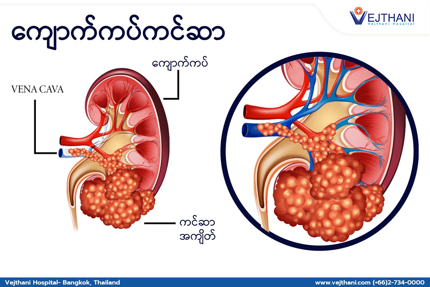 အသေးစိတ်သိရှိလိုပါက Life Cancer Center၊ Vejthani Hospital သို့ ဆက်သွယ်မေးမြန်းနိုင်ပါသည်။ 02-734-0000 Ext ၂၇၂၀ ကိုခေါ်ဆိုပါ။ အင်္ဂလိပ် hotline: (+66) 8-522 38888