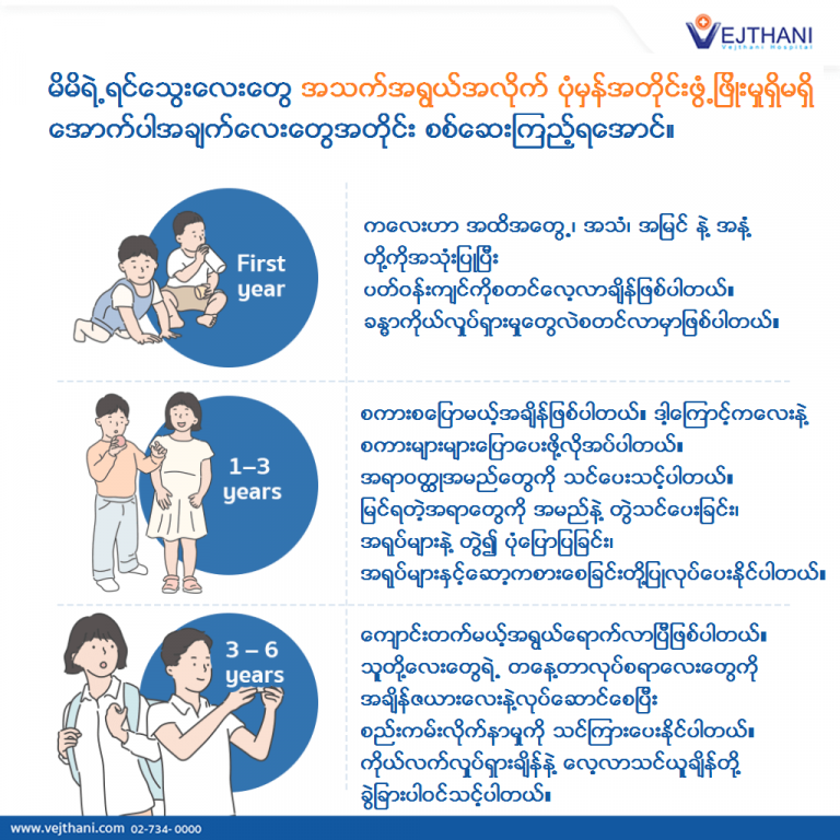 မိမိရဲ့ရင်သွေးလေးတွေအသက်အရွယ်အလိုက်ပုံမှန်အတိုင်းဖွံ့ဖြိုးမှုရှိမရှိ စစ်ဆေးရန်အချက်များ – Observation Checklist for Child’s Development
