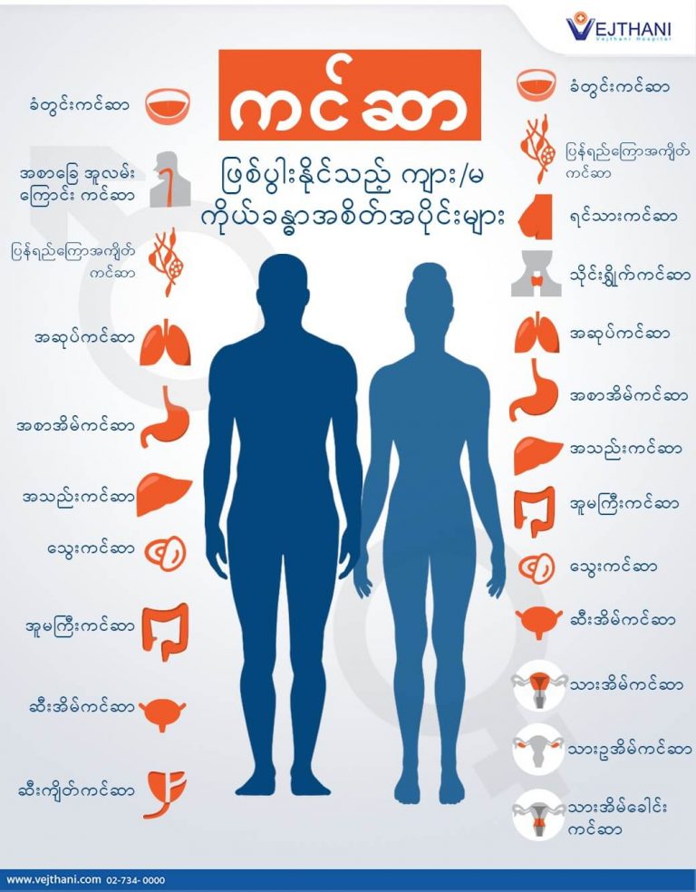 ခန္ဓာကိုယ်ရဲ့ မည်သည့်နေရာတွေမှာ ကင်ဆာဖြစ်နိုင်သလဲ?