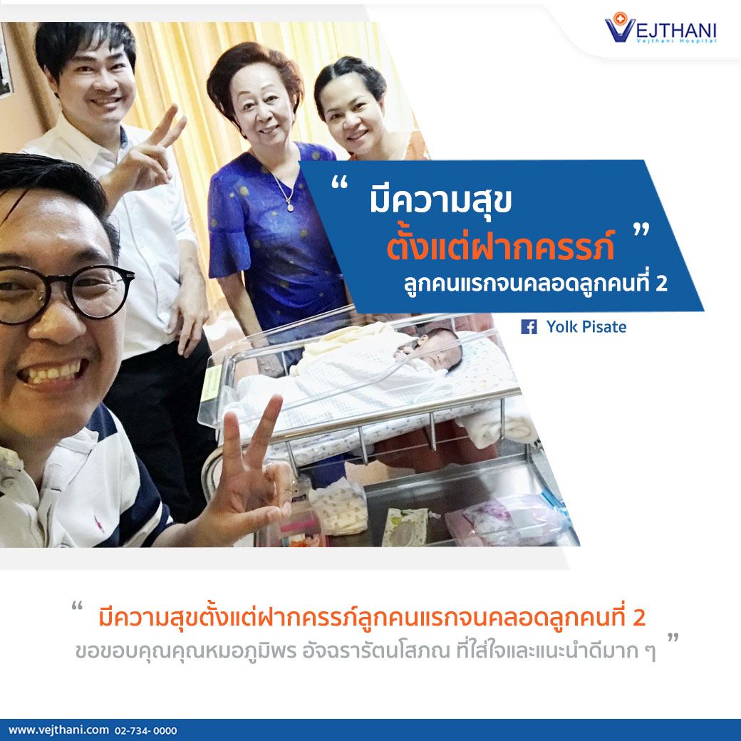 “ มีความสุขตั้งแต่ฝากครรภ์ลูกคนแรกยันคลอดลูกคนที่ 2 ขอขอบคุณคุณหมอภูมิพร อัจฉรารัตนโสภณ ที่ใส่ใจและแนะนำดีมาก ๆ ”