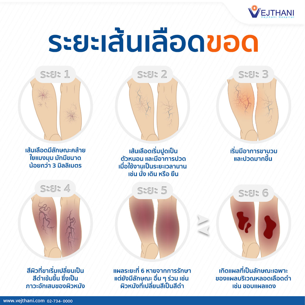 ความรุนแรงของเส้นเลือดขอด มีความแตกต่างกันในแต่ละระยะ ซึ่งหากได้รับการรักษาที่ถูกต้องเหมาะสมตั้งแต่เนิ่น ๆ จะช่วยลดโอกาสในการลุกลามของแผลเส้นเลือดขอดได้