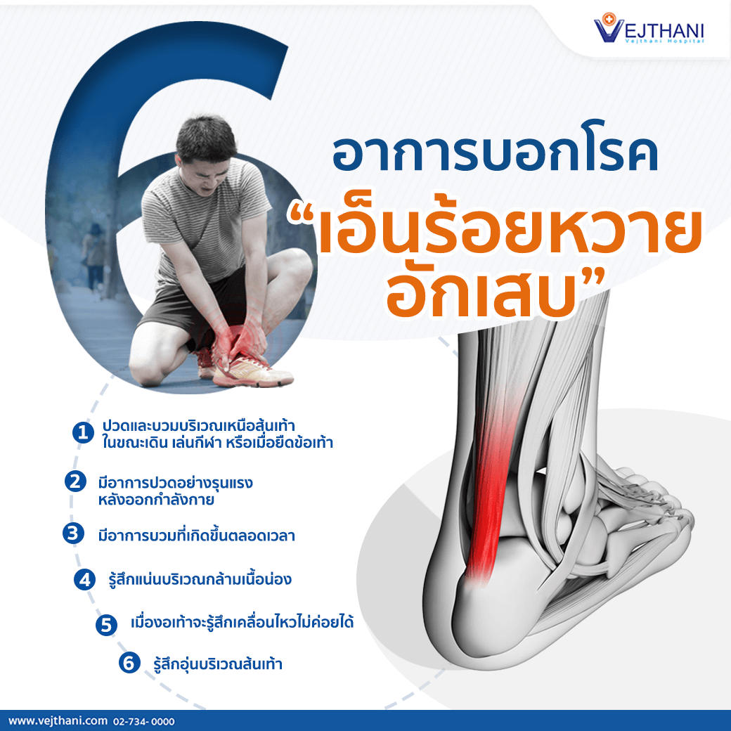 - ปวดและบวมบริเวณเหนือส้นเท้า ในขณะเดิน เล่นกีฬา หรือเมื่อยืดข้อเท้า