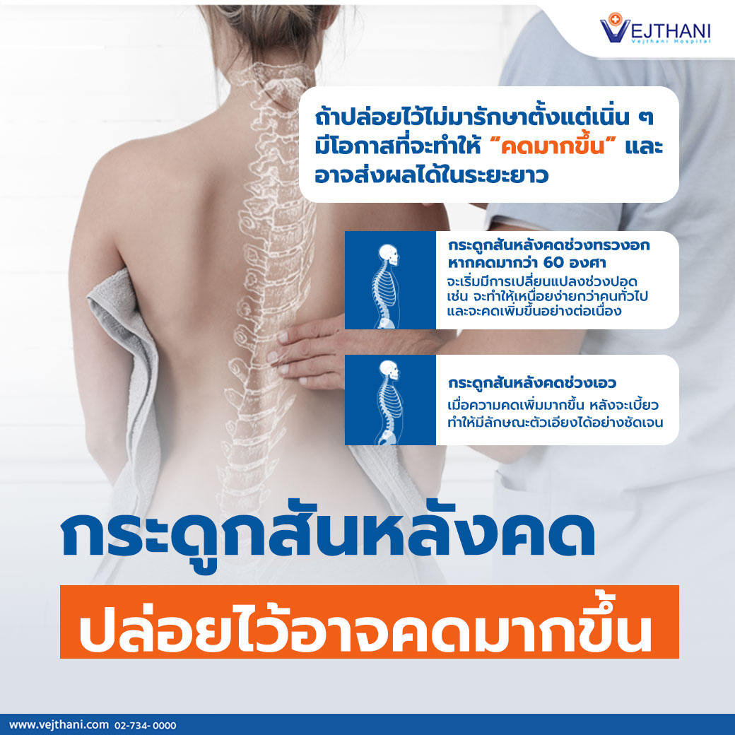 บางคนคิดว่ากระดูกสันหลังคดเป็นแค่ผิดลักษณะเพียงแค่เสียบุคลิกภาพ ไม่ต้องพบแพทย์ก็ได้ ไม่ได้ส่งผลกระทบอะไร แสดงว่ายังไม่รู้จักกระดูกสันหลังคดเพียงพอ สำหรับกระดูกสันหลังคด คือ ภาวะที่มีการบิดหมุนของกระดูกสันหลัง ทำให้กระดูกสันหลังไม่อยู่ในแนวตรง หรือบิดเป็นตัว S หรือ C ซึ่งพบได้ตั้งแต่เด็กไปจนถึงผู้ใหญ่ ซึ่งถ้าปล่อยไว้ไม่มารักษาตั้งแต่เนิ่น ๆ มีโอกาสที่จะทำให้ “คดมากขึ้น ” และอาจส่งผลได้ในระยะยาว พฤติกรรมที่ทำให้กระดูกสันหลังคดมากขึ้น อ่านต่อ