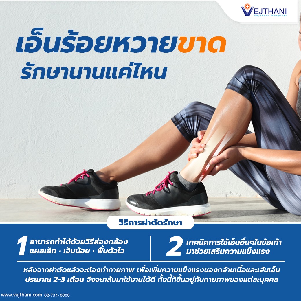 เอ็นร้อยหวาย เป็นเอ็นที่ใหญ่ที่สุดและใช้งานหนักที่สุดในร่างกาย เมื่อมีอุบัติเหตุเกิดขึ้น จนเอ็นร้อยหวายตึงตัวเกินไป ทำให้เกิดเอ็นร้อยหวายขาดได้ การรักษาสามารถรักษาได้ทั้งวิธีผ่าตัดและไม่ผ่าตัด ขึ้นอยู่กับความรุนแรงของโรค ลักษณะการใช้งานข้อเท้า และสภาวะสุขภาพของผู้ป่วยปัจจุบันการรักษาเอ็นร้อยหวายฉีกขาดด้วยวิธีผ่าตัดนั้นพัฒนาไปมาก มีเทคนิคการผ่าตัดที่เพิ่มผลสำเร็จในการรักษาหลายอย่าง เช่น
