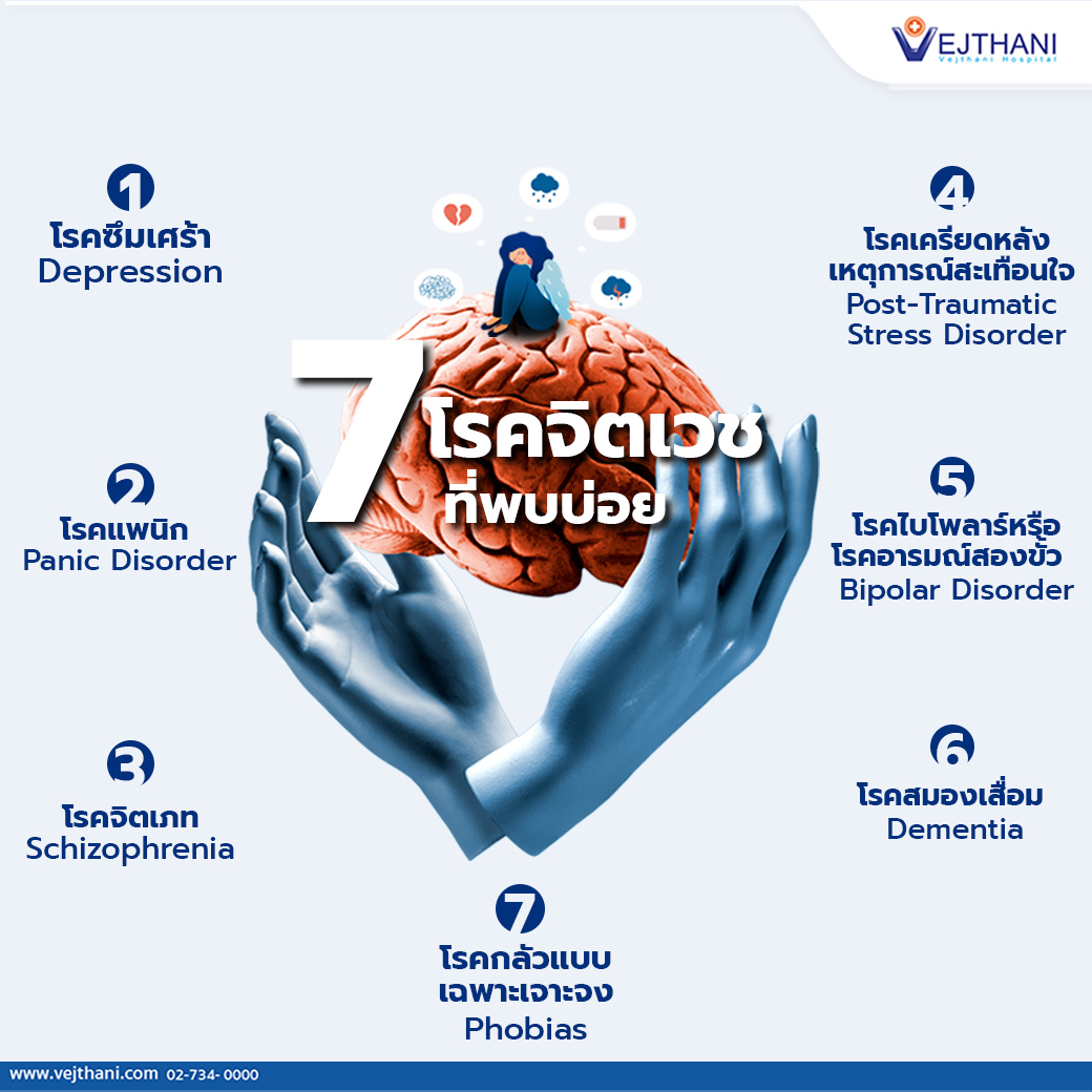 โรคจิตเวช คือกลุ่มอาการทางจิตใจหรือพฤติกรรมที่ทำให้ผู้ป่วยมีความบกพร่องในกิจวัตรต่าง ๆ หรือเกิดความทุกข์ทรมาน ซึ่งหลายคนไม่รู้ว่าตัวเองป่วย หรือบางคนรู้แต่ไม่มาพบแพทย์ ทำให้อาการหนักขึ้นเรื่อย ๆ จนนำไปสู่ภาวะแทรกซ้อนที่อันตรายถึงชีวิต โดยโรคจิตเวชที่พบบ่อยการสังเกตอาการคนรอบข้างรวมถึงตัวเองเกี่ยวกับโรคจิตเวชเป็นเรื่องสำคัญ หากพบความผิดปกติหรือส่งผลกระทบต่อการใช้ชีวิต ควรรีบปรึกษาจิตแพทย์เพื่อวินิจฉัยและวางแผนรักษาก่อนอาการรุนแรง