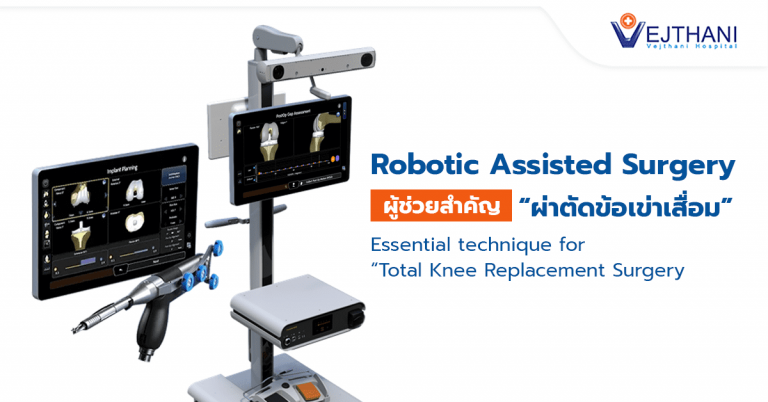 “ข้อเข่าเสื่อม” ปัญหาที่พบได้บ่อยในผู้สูงวัยเมื่ออายุมากขึ้น แต่ปัจจุบันพบผู้ป่วยในช่วงอายุที่น้อยลง หากปล่อยให้ข้อเข่าเสื่อมมากอาจกระทบต่อการใช้ชิวิตประจำวัน เมื่อมีอาการรุนแรงมากขึ้นผู้ป่วยจำเป็นจะต้องรักษาด้วยการผ่าตัด ปัจจุบันโรงพยาบาลเวชธานีมีการพัฒนาไปอีกระดับหนึ่ง เพื่อให้การผ่าตัดเปลี่ยนข้อเข่าเทียมได้ผลที่สมบูรณ์แบบมากขึ้น ด้วยการต่อยอดจากการใช้คอมพิวเตอร์นำร่องช่วยผ่าตัด (Computer Assisted Surgery) มาเป็นหุ่นยนต์นำร่องช่วยผ่าตัด (Robotic Assisted Surgery) เทคโนโลยีเหล่านี้จะช่วยให้การผ่าตัดมีความถูกต้องของการผ่าตัดมีมากยิ่งขึ้น