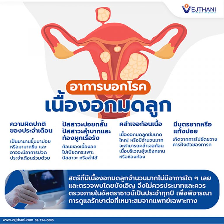 อาการเตือนที่บอกว่าเราอาจจะเป็นเนื้องอกมดลูก สำหรับอาการของเนื้องอกมดลูกที่พบได้บ่อย ได้แก่ ความผิดปกติของประจำเดือน ไม่ว่าจะเป็นมานานขึ้น มาบ่อยขึ้น หรือมามากขึ้น ซึ่งอาจทำให้เกิดภาวะโลหิตจางได้ และอาจจะมีอาการปวดประจำเดือนร่วมด้วย