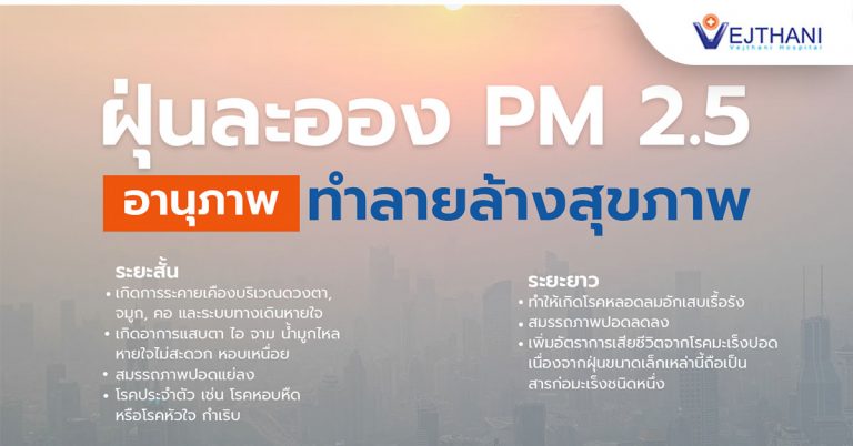 นายแพทย์นัทพล ธรรมสิทธิ์บูรณ์ โสต ศอ นาสิกแพทย์ โรงพยาบาลเวชธานี กล่าวว่า PM 2.5 ฝุ่นละอองขนาดเล็กที่หลายคนคงเคยได้ยิน หากใครที่มีการสัมผัสกับฝุ่นละอองชนิดนี้ อาจส่งผลกระทบที่เป็นอันตรายต่อสุขภาพทั้งในระยะสั้นและยาวได้ ดังนี้