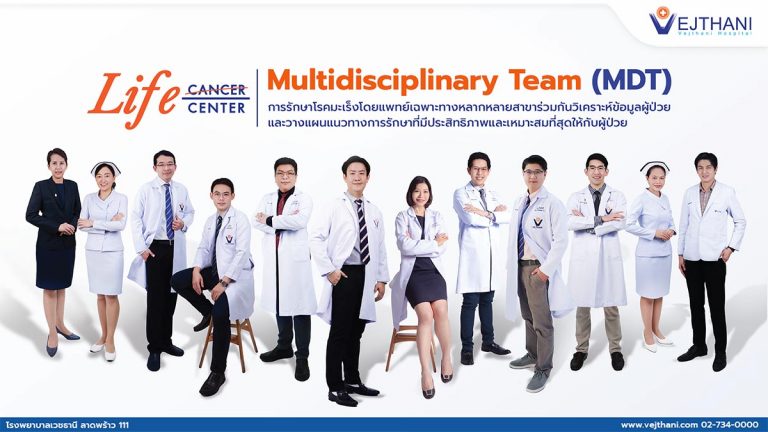 Multidisciplinary Team หรือ MDT คือการรักษาโรคมะเร็งโดยแพทย์เฉพาะทางหลากหลายสาขาร่วมกันวิเคราะห์ข้อมูลผู้ป่วยและวางแผนแนวทางการรักษาที่มีประสิทธิภาพและเหมาะสมที่สุดให้กับผู้ป่วย