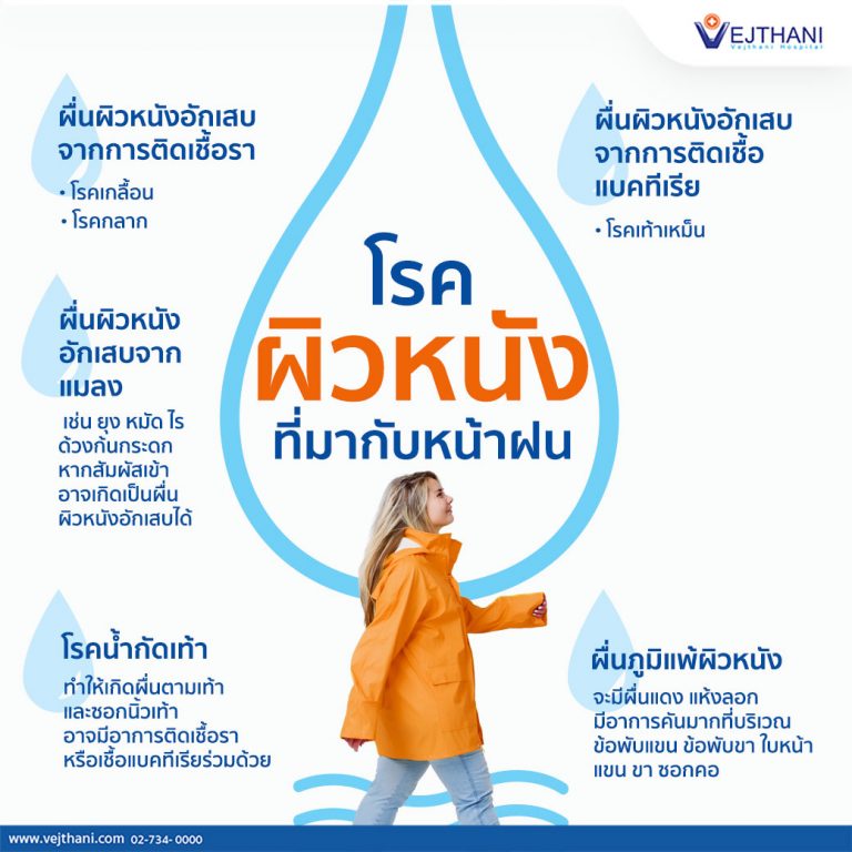 ฤดูฝนเป็นช่วงที่มีความชื้นในอากาศสูง ทำให้มีการเจริญเติบโตของเชื้อราและเชื้อแบคทีเรีย ส่งผลให้เกิดโรคผิวหนังตามมาได้ง่ายมาก ๆ