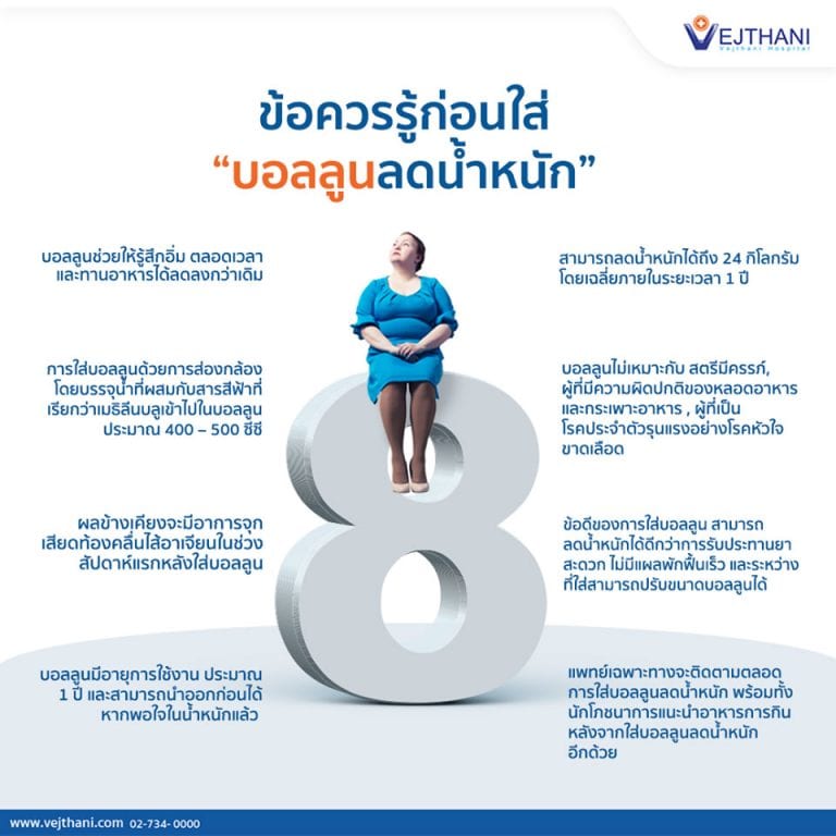 ความอ้วน การลดน้ำหนักเทคนิคใหม่ สามารถรักษาโรคอ้วนโดยการใส่บอลลูนในกระเพาะอาหาร โดยการส่องกล้อง ซึ่งตัวบอลลูนจะเป็นซิลิโคนทางการแพทย์ และบรรจุน้ำเข้าไปในบอลลูนประมาณ 400-500 ซีซี ตามหลักการ บอลลูนที่ใส่ในกระเพาะอาหารจะทำให้รู้สึกอิ่ม และรับประทานอาหารได้น้อยลง ติดต่อสอบถามข้อมูลเพิ่มเติม ศูนย์โรคระบบทางเดินอาหารและตับ โทร 02 7340000 ต่อ 2960, 2961