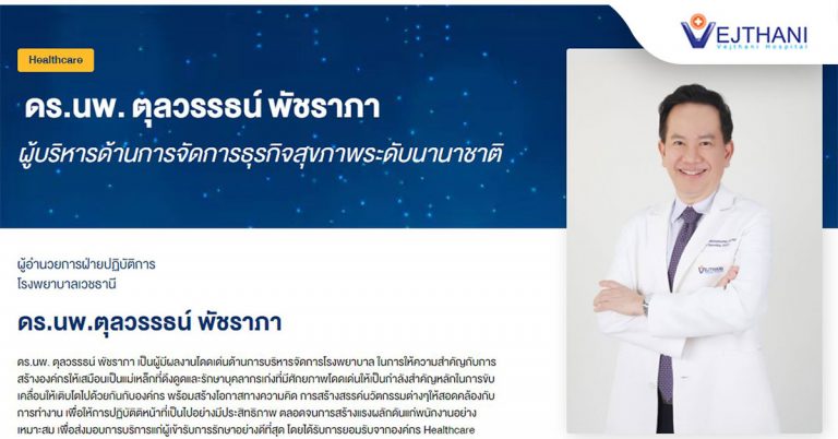 ขอแสดงความยินดีกับ ดร.นพ.ตุลวรรธน์ พัชราภา ผู้อำนวยการปฏิบัติการ โรงพยาบาลเวชธานี ในหน้าข่าวสารและบริการค่ะข่าวสารและบริการ