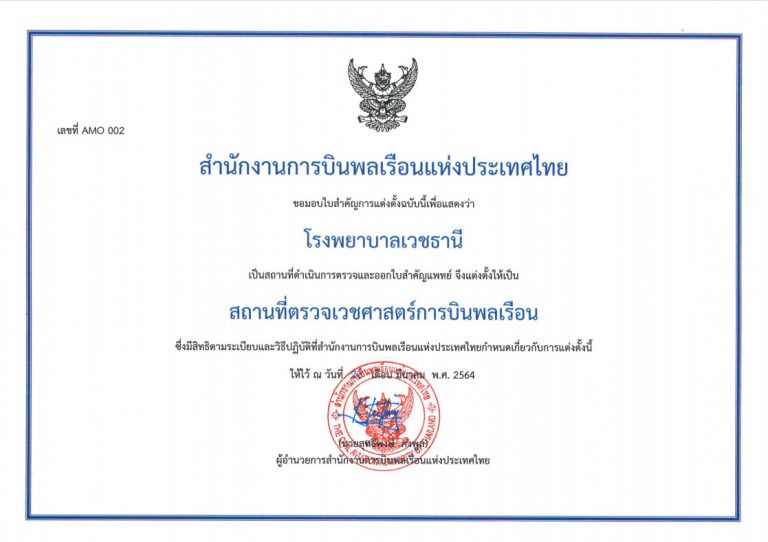 สำนักงานการบินพลเรือนแห่งประเทศไทย ประกาศอนุมัติ ให้โรงพยาบาลเวชธานีเป็นสถานที่ตรวจเวชศาสตร์การบินพลเรือนข่าวสารและบริการ