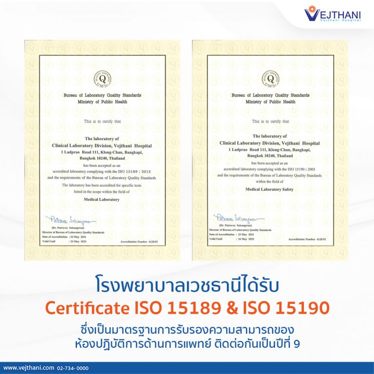 โรงพยาบาลเวชธานีได้รับ Certificate ISO 15189 และ ISO 15190ข่าวสารและบริการ