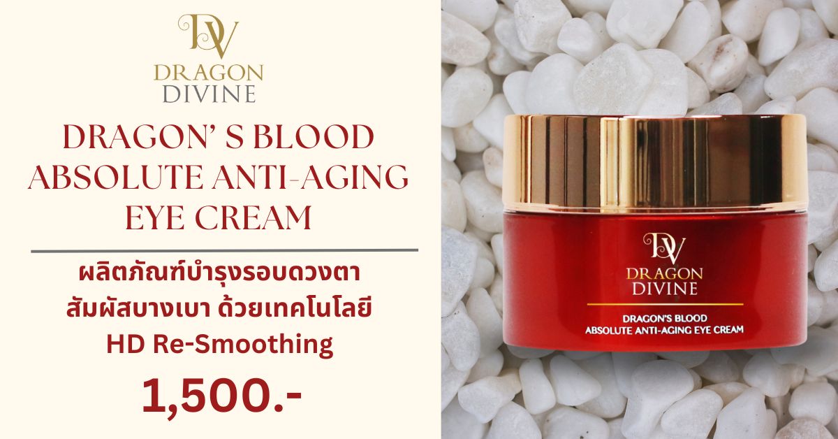 ผลิตภัณฑ์บำรุงผิวรอบดวงตา DRAGON’ S BLOOD ABSOLUTE ANTI-AGING EYE CREAM ให้เนื้อสัมผัสที่บางเบา ไม่หนักผิว มาพร้อมกับเทคโนโลยี HD Re-Smoothing ช่วยกักเก็บความชุ่มชื้นของผิว บำรุงผิวรอบดวงตาให้กระจ่างใสและเรียบเนียน อีกทั้ง ยังช่วยให้ความหมองคล้ำและริ้วรอยบริเวณใต้ตาดูจางลง