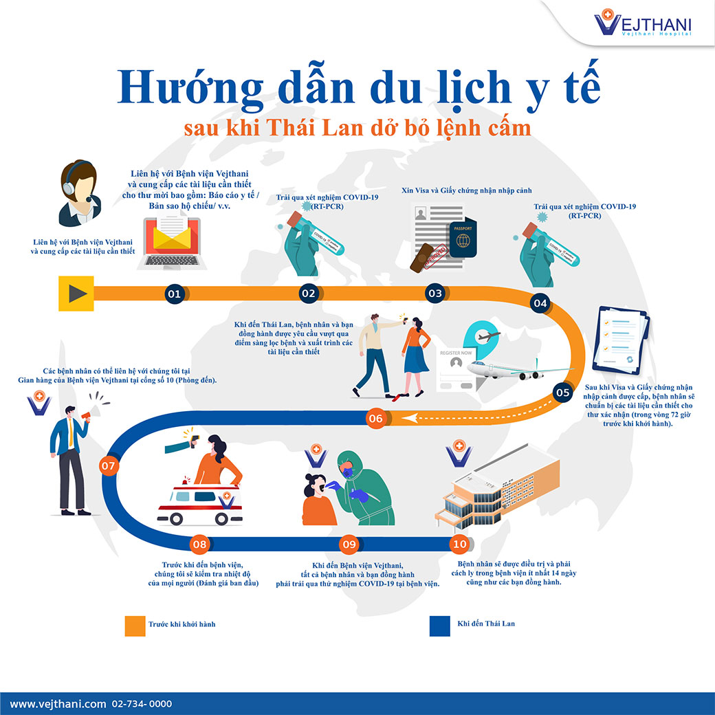 Sau khi dỡ bỏ lệnh cấm ở Thái Lan, du lịch y tế và chăm sóc sức khỏe sẽ được cho phép. Tuy nhiên, những bệnh nhân muốn được điều trị tại Thái Lan phải liên hệ với Bệnh viện Vejthani và cung cấp các tài liệu cần thiết bao gồm: