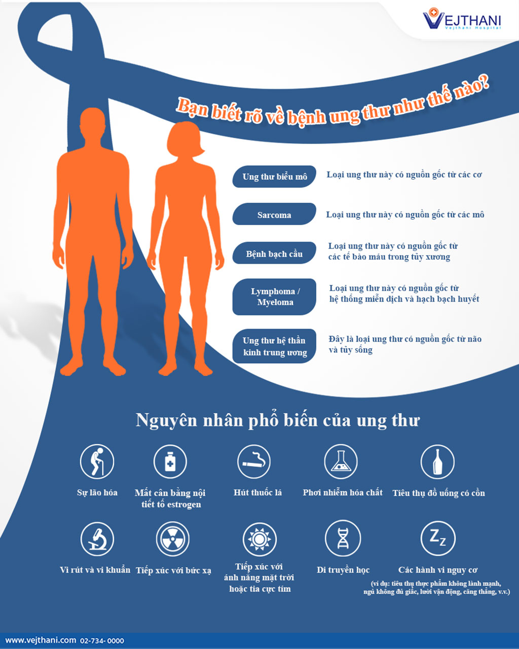 Ung thư là một căn bệnh gây ra bởi sự sản sinh các tế bào bất thường không kiểm soát được trong các cơ quan của con người, cuối cùng tạo thành một khối u ung thư. Ung thư có thể lây lan từ cơ quan bị ảnh hưởng đến các cơ quan lân cận hoặc các cơ quan khác thông qua hệ thống tuần hoàn máu và hệ thống bạch huyết tùy thuộc vào vị trí nguồn gốc và loại tế bào ung thư.