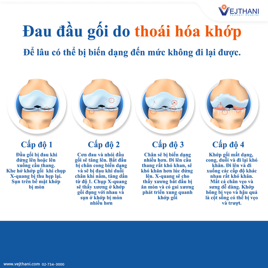 “Bệnh thoái hóa khớp sẽ ngày càng nặng hơn nếu không được điều trị kịp thời, có thể phát ra tiếng kêu lục cục khi sử dụng như khi đứng lên, đi lại, lên xuống cầu thang, đau khi bắt đầu cử động khớp gối. Vòn gây sưng tấy, đỏ, nóng chứng tỏ tình trạng thoái hóa khớp gối đã ở mức độ nặng hơn. Nếu không được điều trị, nó có thể gây biến dạng khớp gối đến mức rất khó đứng lên hay đi lại”, bác sĩ Prem Sathian cho biết.