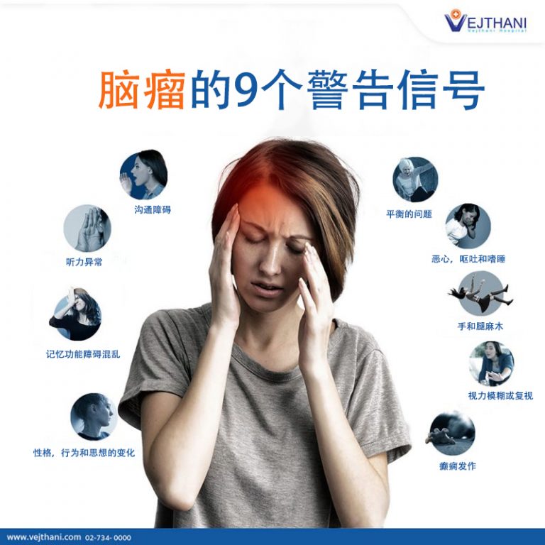 1. 性格、行为和思想的变化 2. 记忆功能障碍或混乱 3. 听力异常 4. 沟通障碍 5. 平衡的问题 6. 恶心,呕吐和嗜睡 7. 手和腿麻木 8. 视力模糊或复 9. 癫痫发作